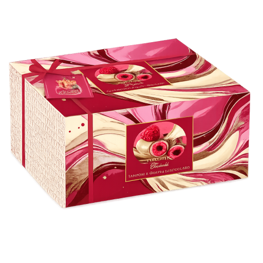 Italienische Osterfreude in Geschenkqualität: Die Colomba Royale – Lamponi e doppio cioccolato verbindet die Eleganz einer klassischen Colomba mit einem modernen, besonders „royalen“ Geschmacksspiel aus Frucht und Schokolade. Im Mittelpunkt steht ein natürlich gelockerter Teig (Sauerteig/Lievito madre), der für eine saftige, fluffige Konsistenz sorgt – typisch für die italienische Festtagsbäckerei.